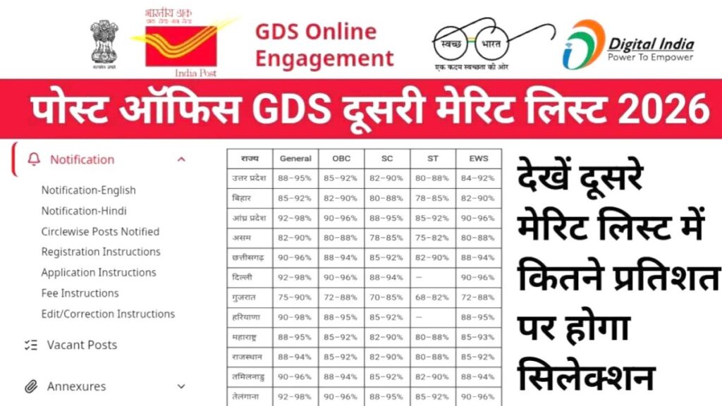इंडिया पोस्ट जीडीएस भर्ती 2026 की दूसरी मेरिट लिस्ट विजिटर वेबसाइट जल्द ही जारी होगी। गरीबों की सुविधा के लिए यहां नवीनतम अपडेट यहां दें।